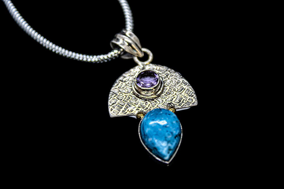 Sterling Silver Textured Pendant/Bezel-Set Jasper